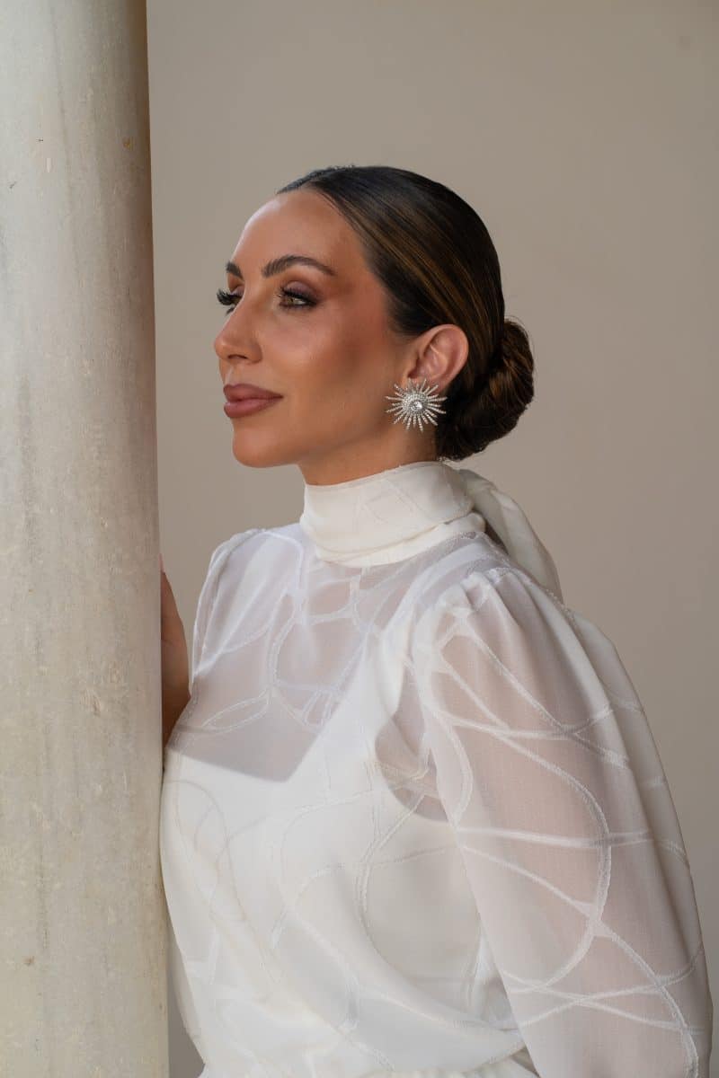 Pendientes de estrella plateada con cristales de 4,2cm de diámetro, con cierre en omega, que dispone de juego de peinecillos a conjunto para ser la invitada perfecta.