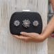 Precioso bolso en color negro con detalles de apliques en plateado.