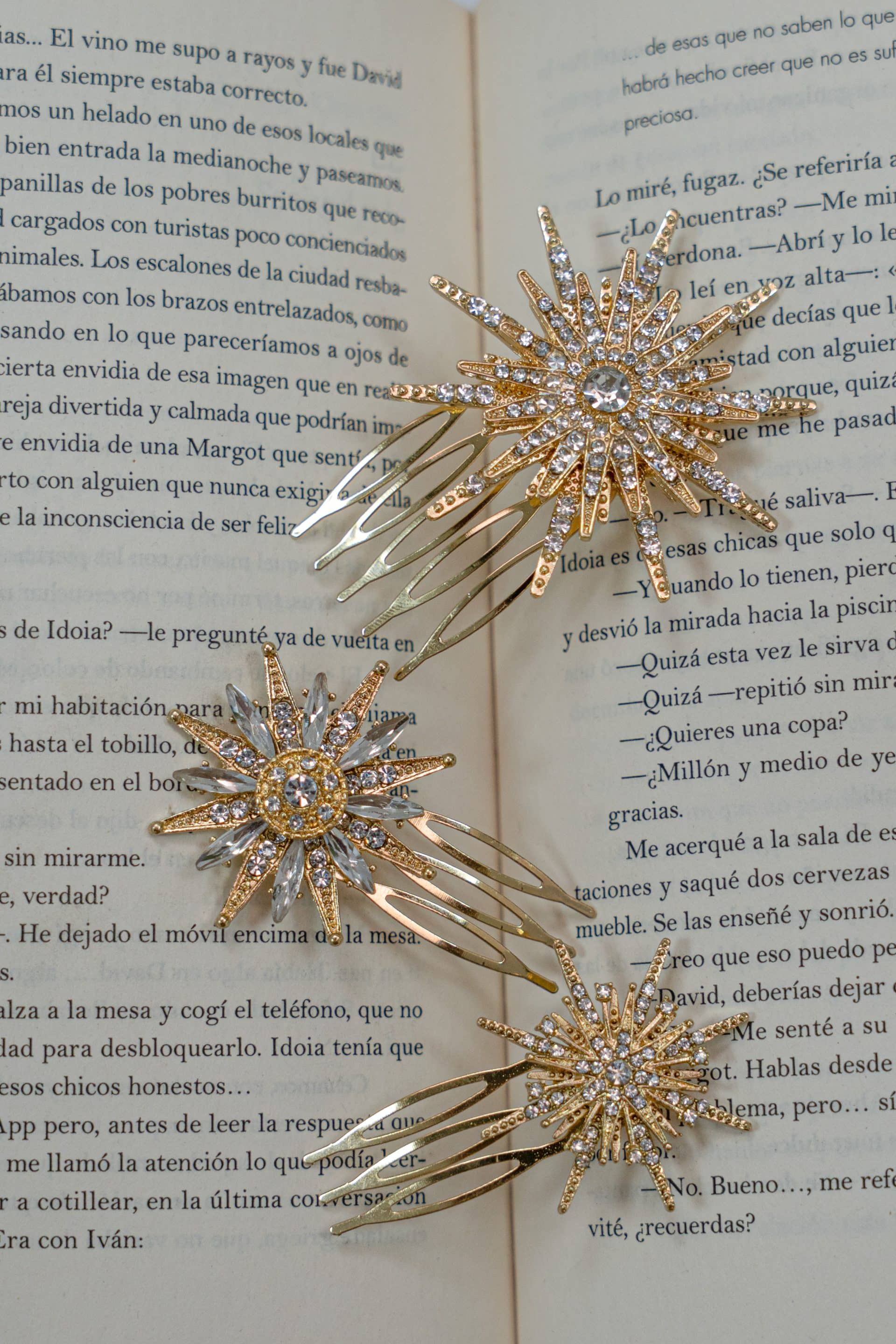 Las estrellas más bonitas, hechas peinecillos. Conjunto formado por un pack de tres estrellas de diferentes tamaño y forma, que juntas harán una constelación increíble. ¿Se te ocurre llevar un tocado más especial?