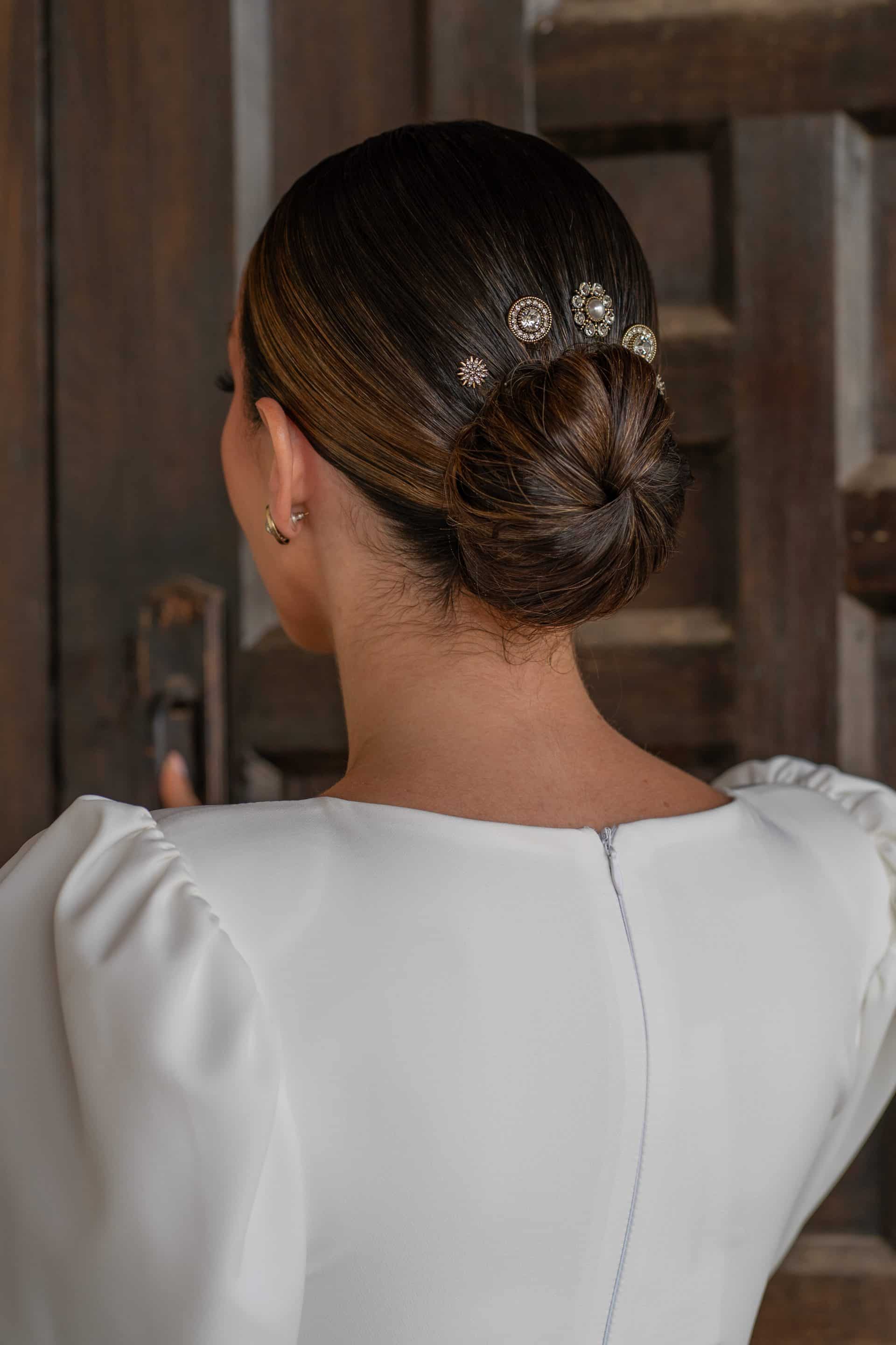 Formado por la combinación cinco piezas de tres modelos de peinecillos diferentes de estilo vintage, serán perfectos para acompañarte en el día más especial.