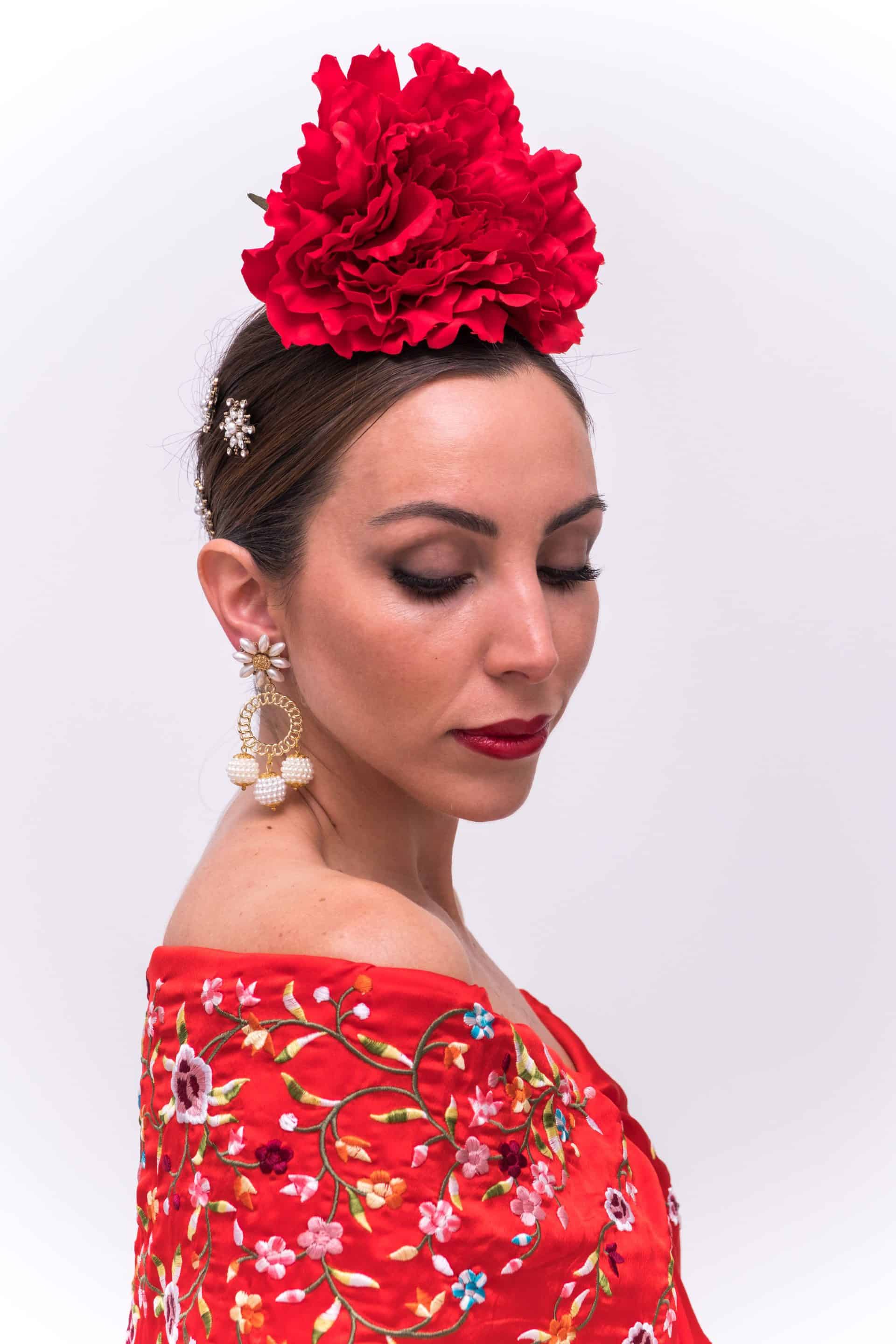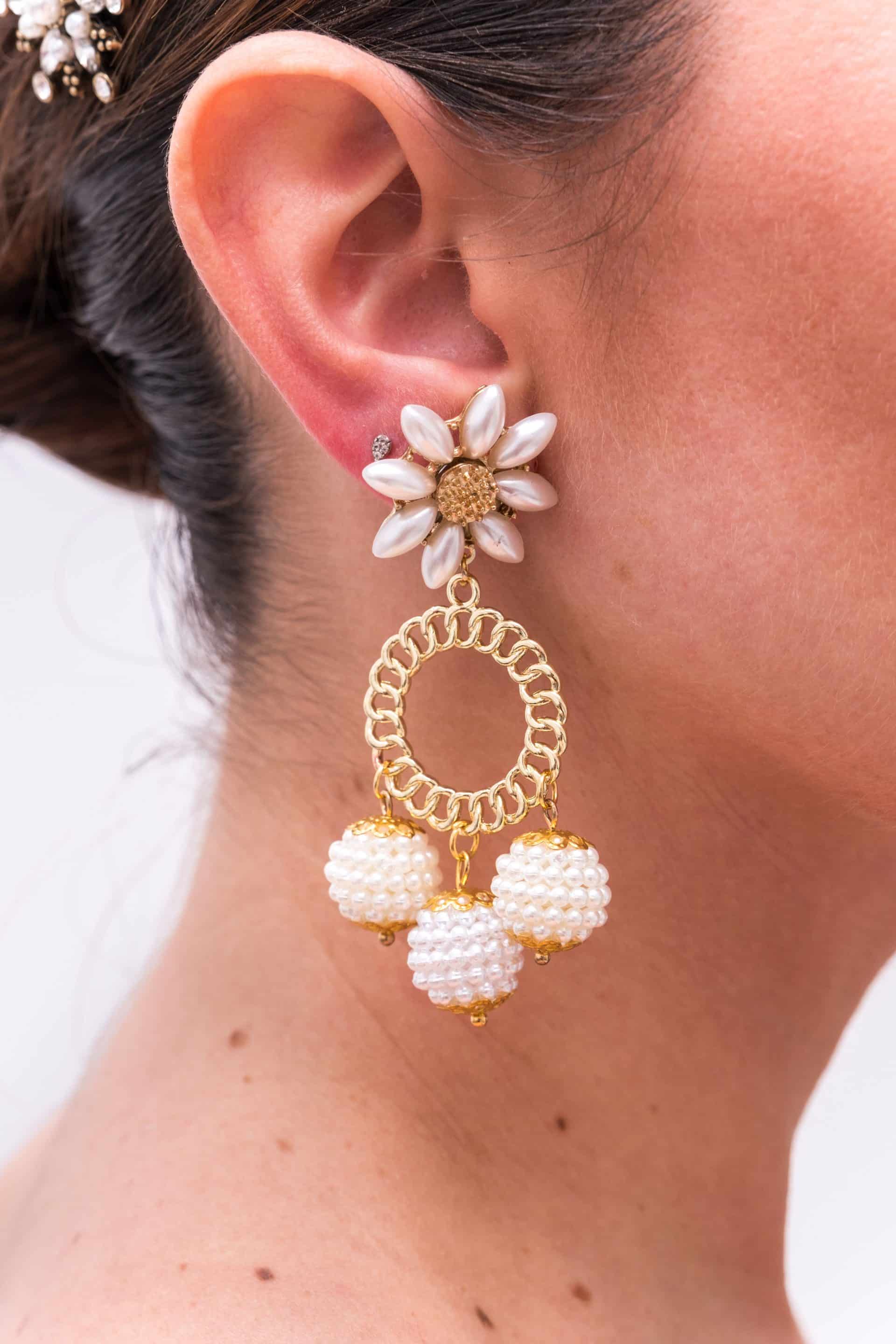 Pendiente de margarita, con pieza central que combina tres perlas en la zona baja.