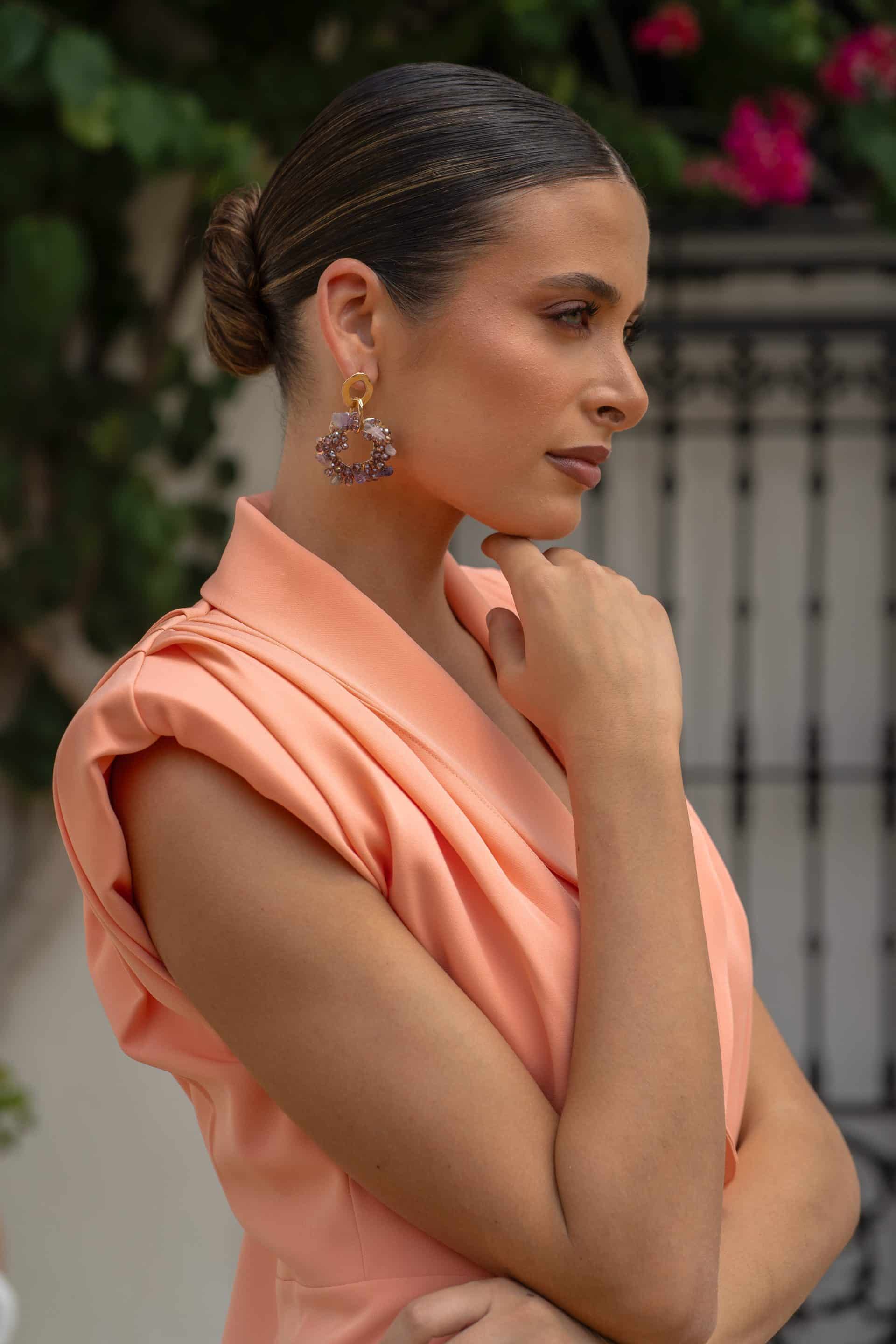 Con pendiente de cierre tipo tornillo y rematado por aplique con piedras engarzadas en la pieza central, será perfecto para todos los eventos que tengas por delante.