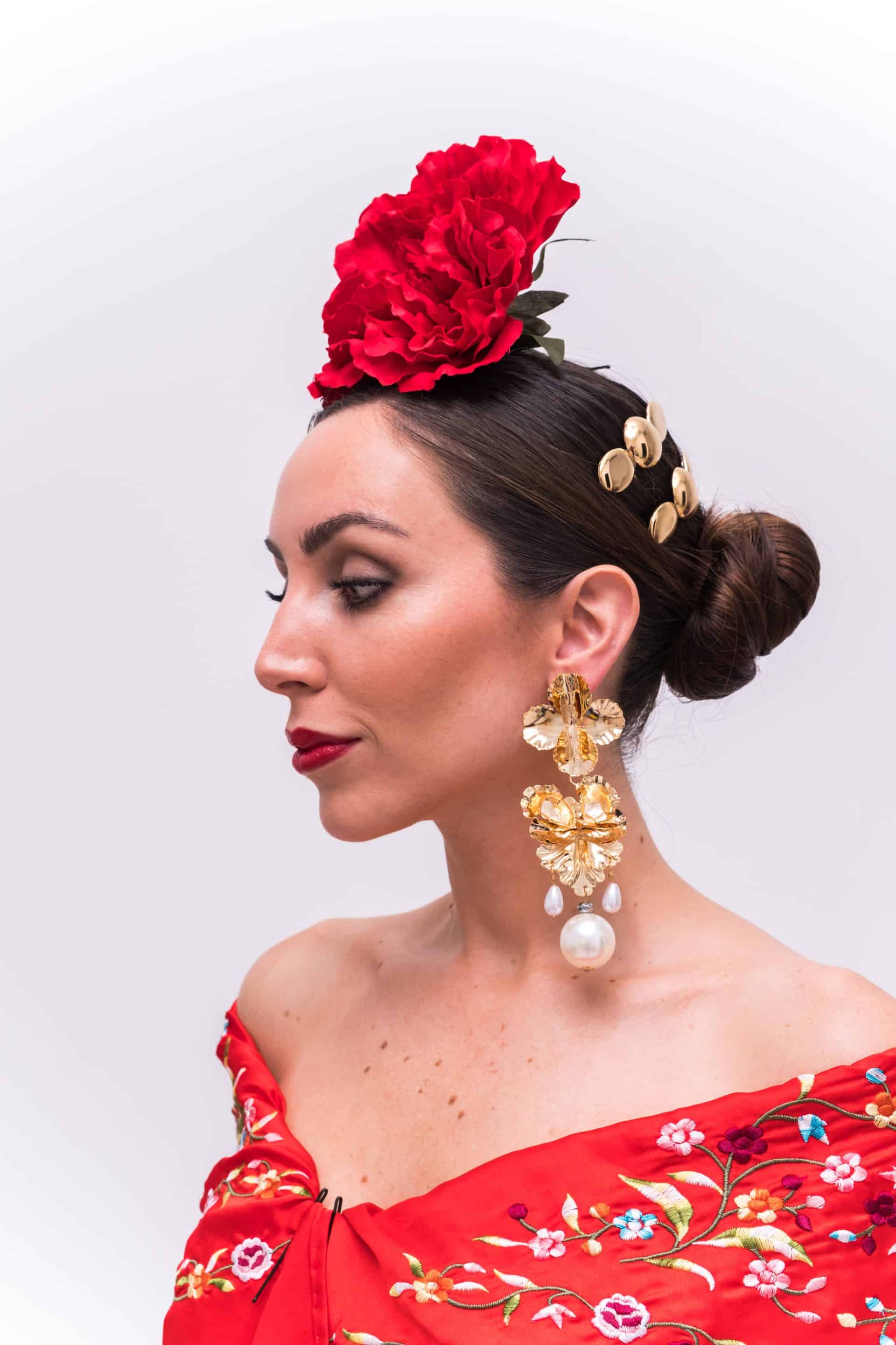 La combinación de perlas y dorado, unido a su tamaño, hace que sea la pieza perfecta para cualquier flamenca que le guste lucir complementos que hablen por sí solos.