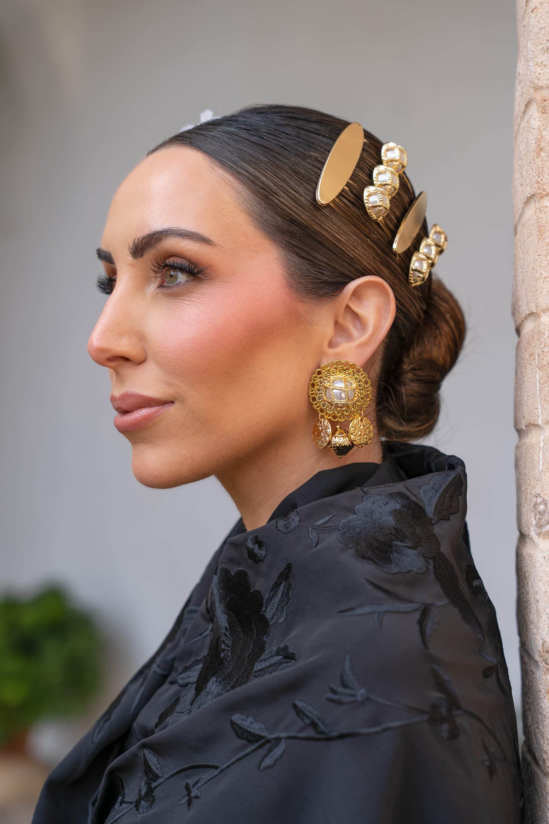 Para las que no quieren unos pendientes muy grandes esta feria, pero sin embargo, les gusta que tengan brillo, cuerpo y no pasen desapercibidos, este modelo es el perfecto.