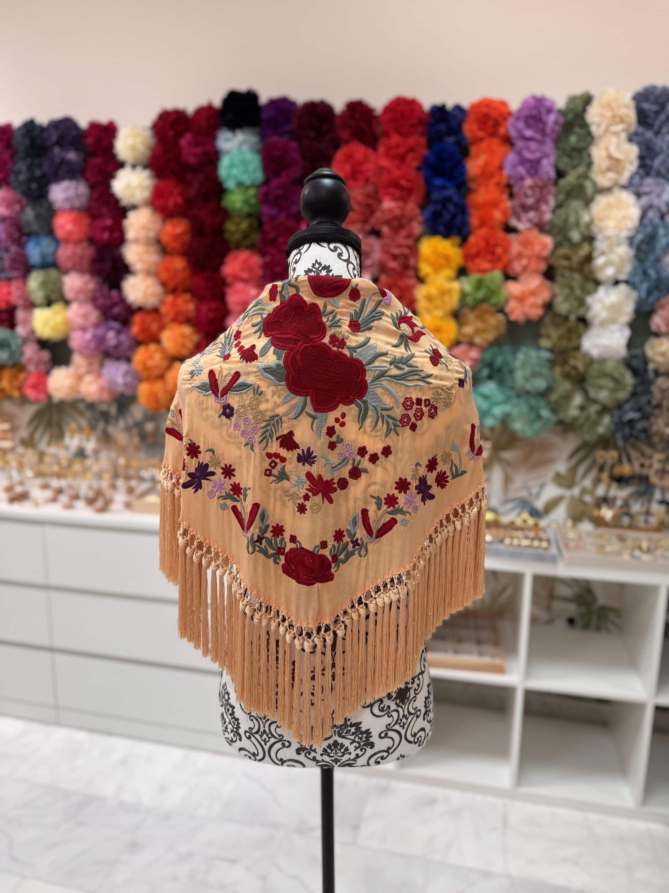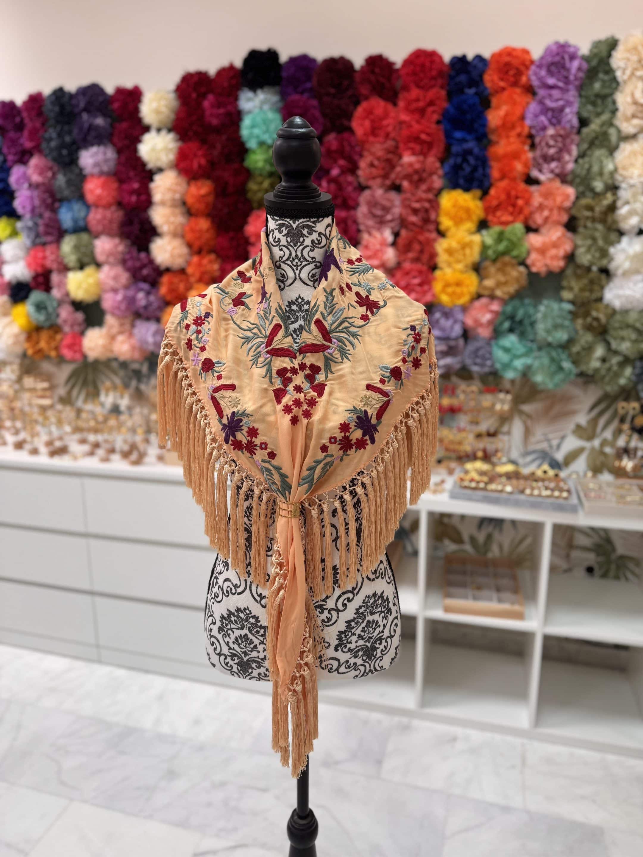 Mantoncillo Chipiona melocotón bordados rojos