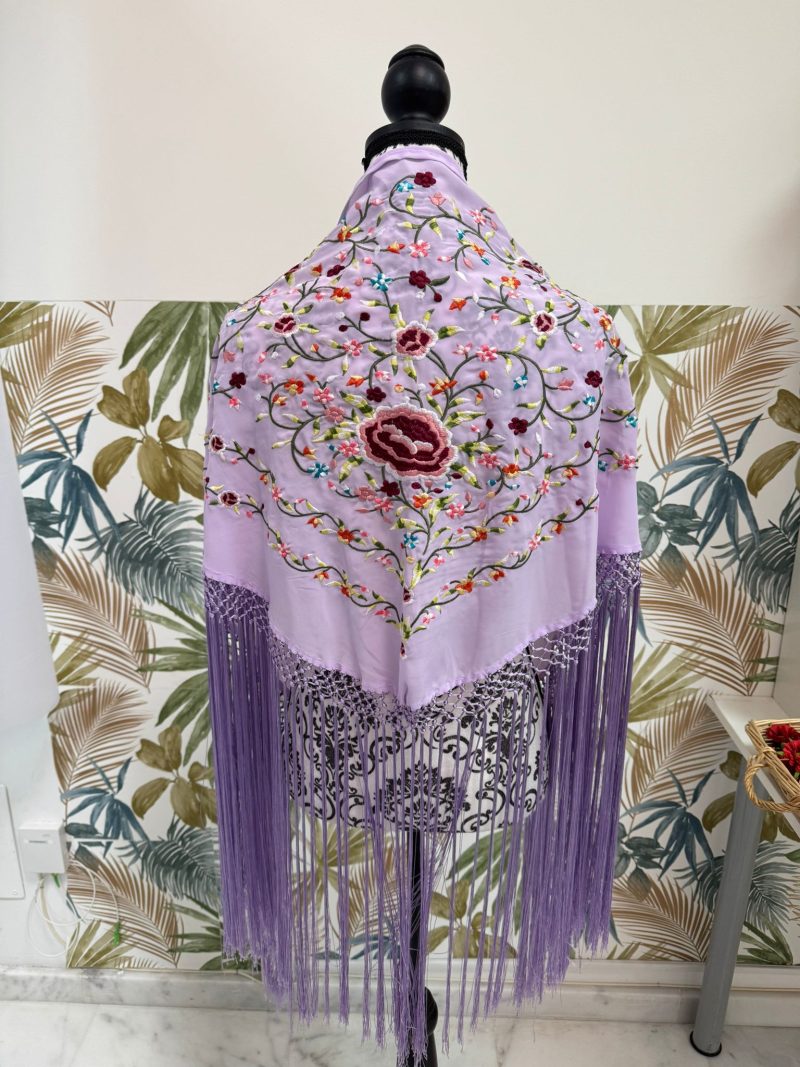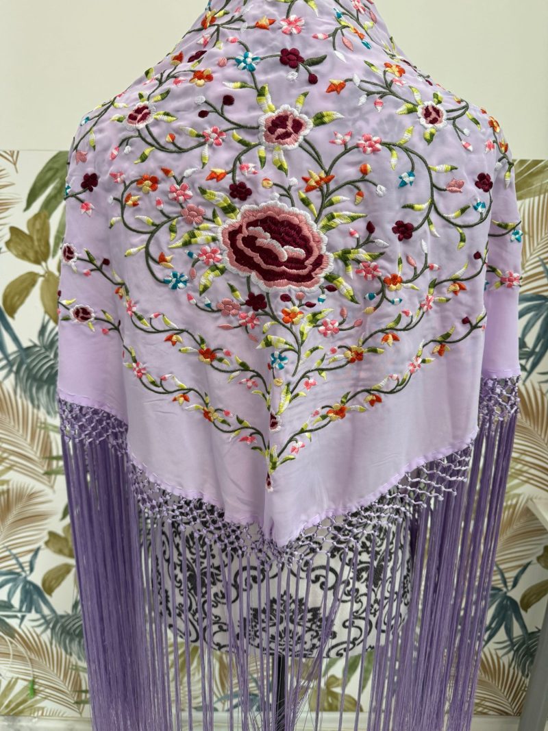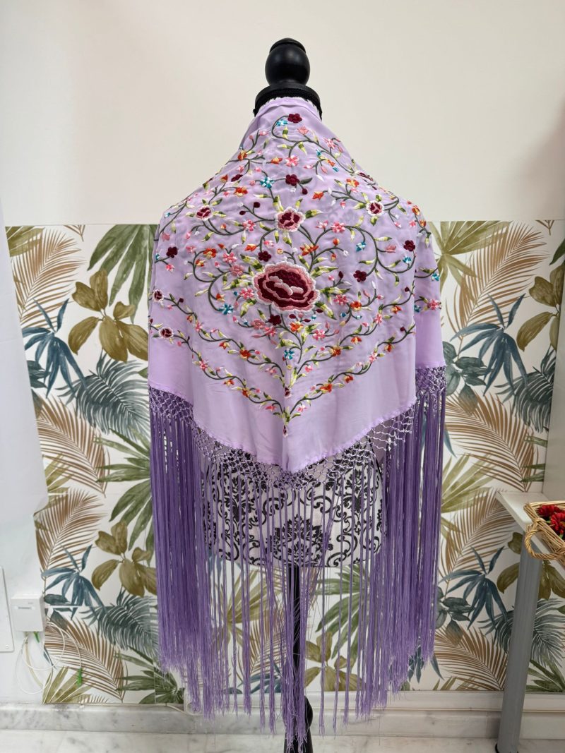 Nuestro mantoncillo floral es precioso, de crespón bordado y enflecado en seda. Colorido y elegante.