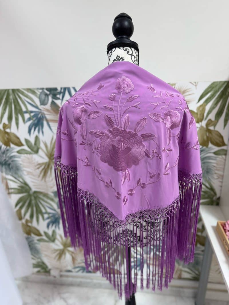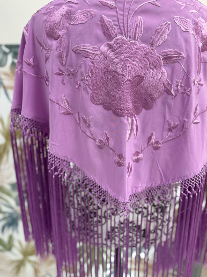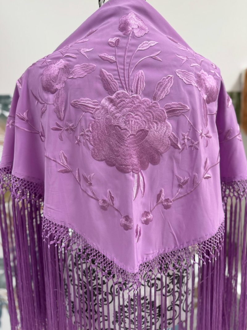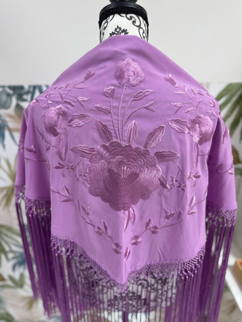 Bordados al tono en seda y flecados en seda.