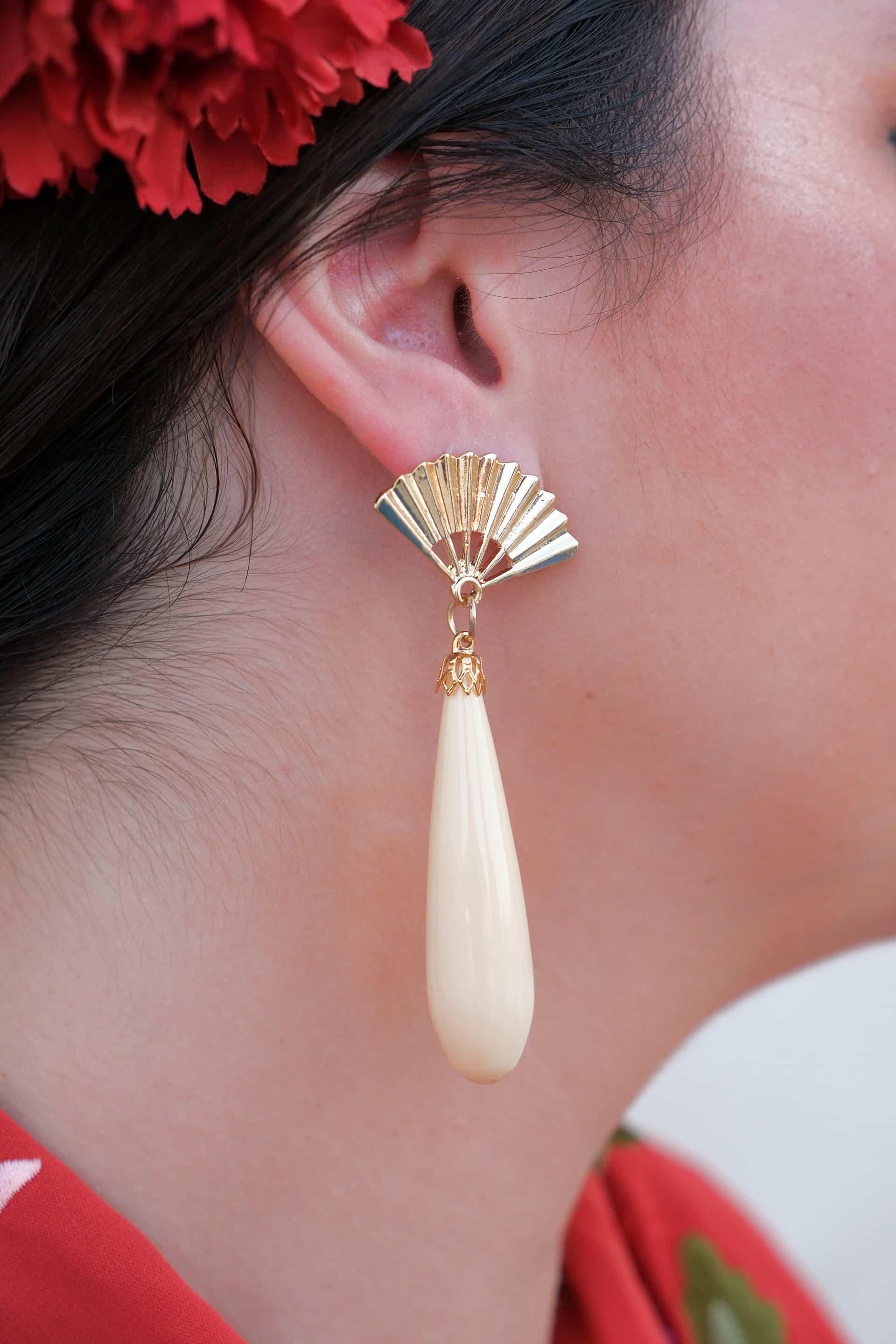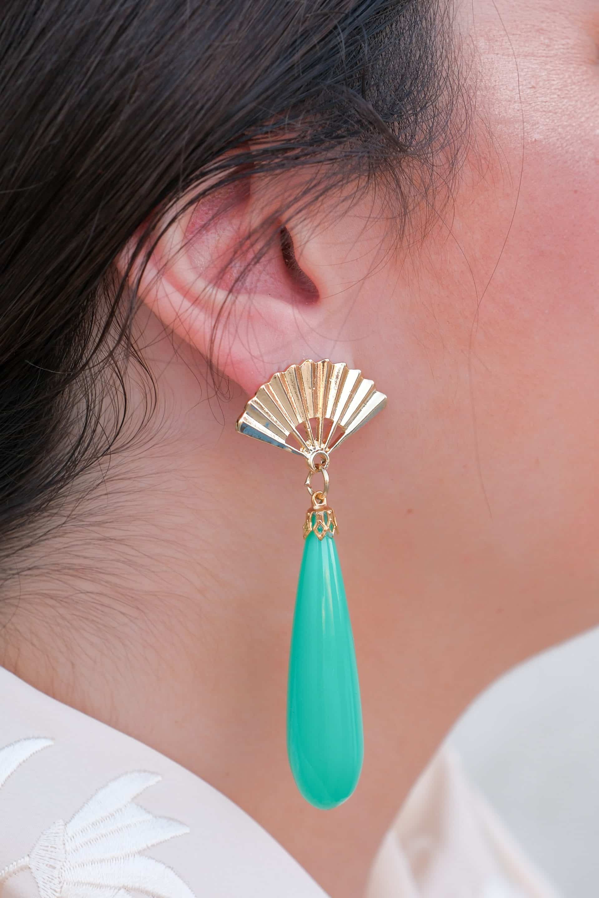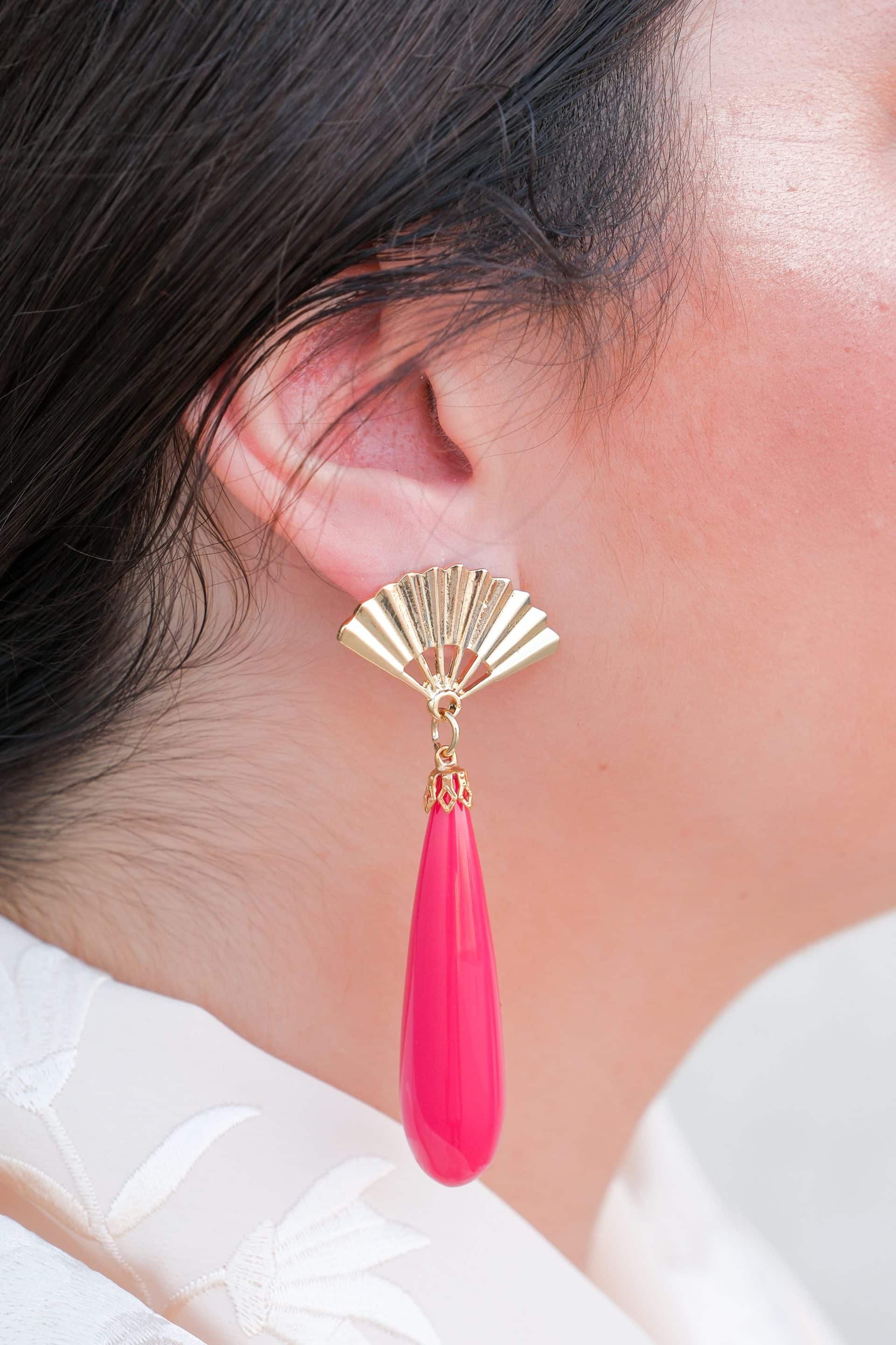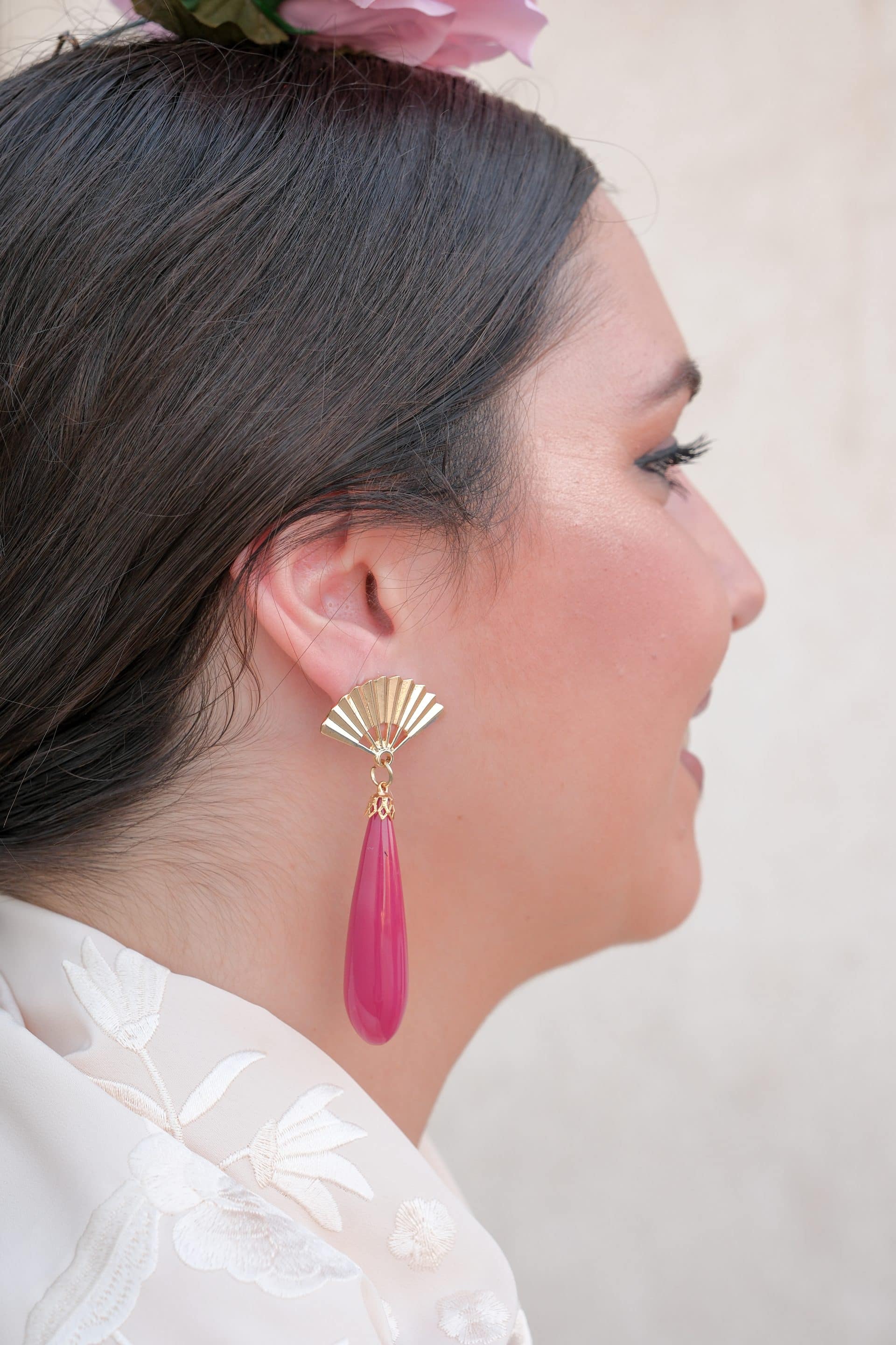 Y en toda feria o romería, unos pendientes clásicos que combinen abanicos y lágrimas de resina, son todo un acierto.