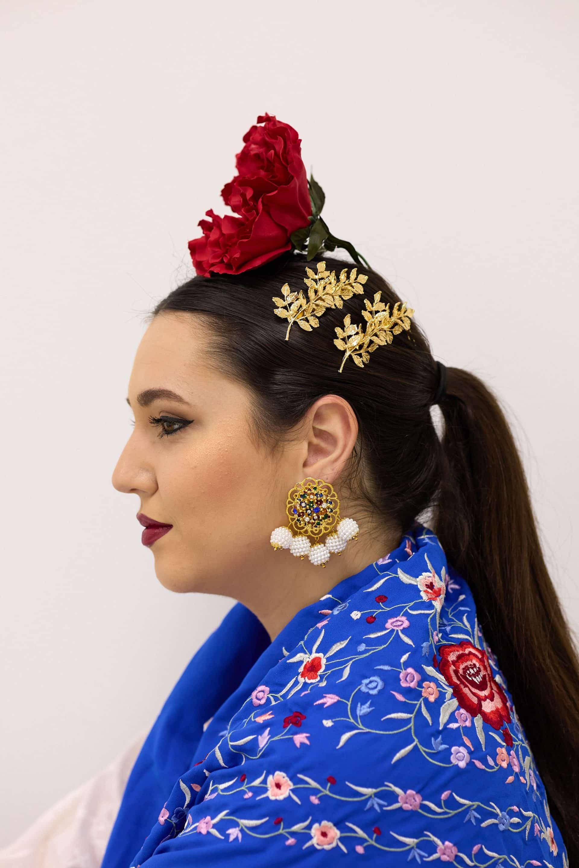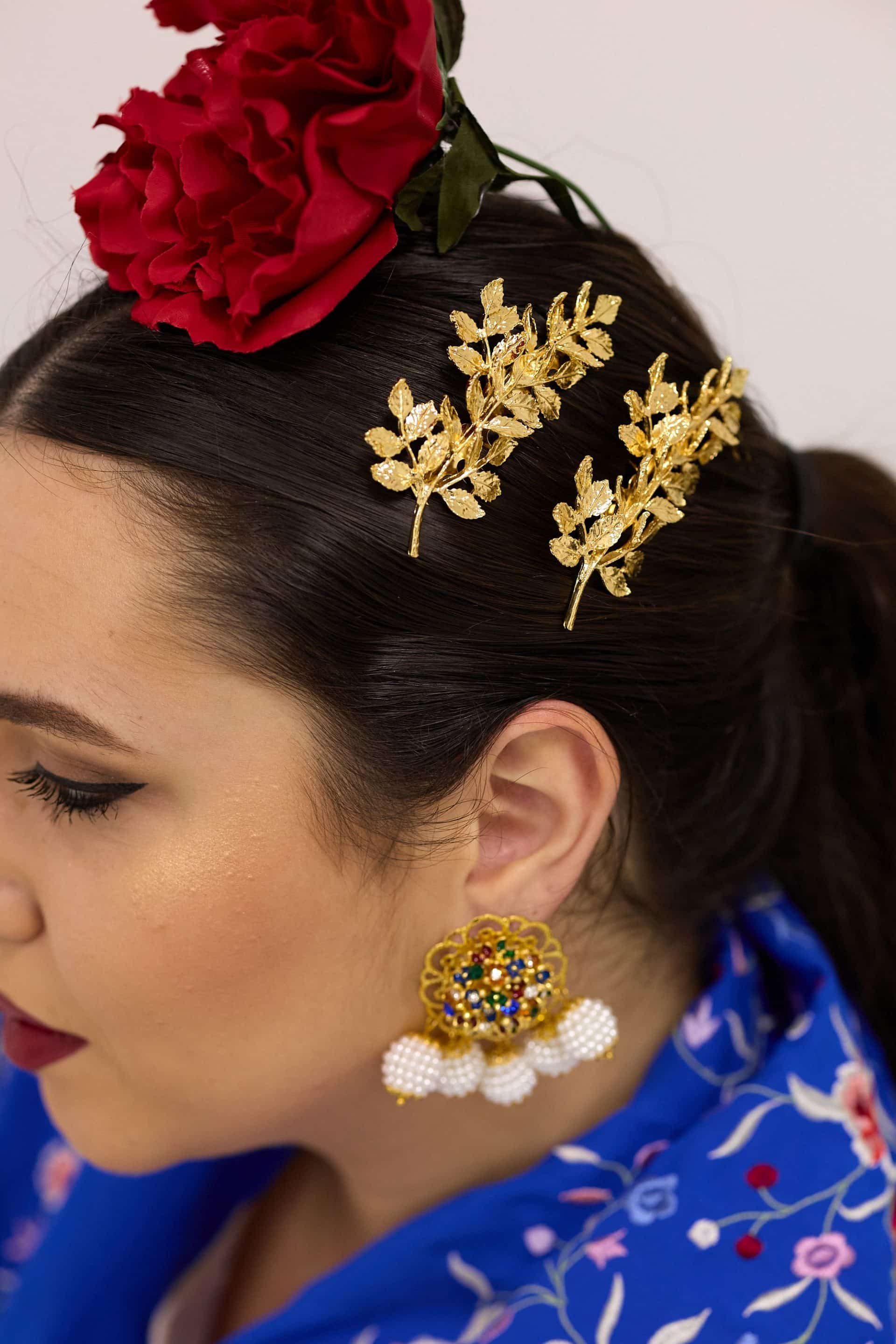 El modelo Natalia combina con cualquier color. Gracias a su pendiente central colorida, y el remate de perlas facetadas, te dará el juego que necesitas para combinar con toda tu colección de flamenca.